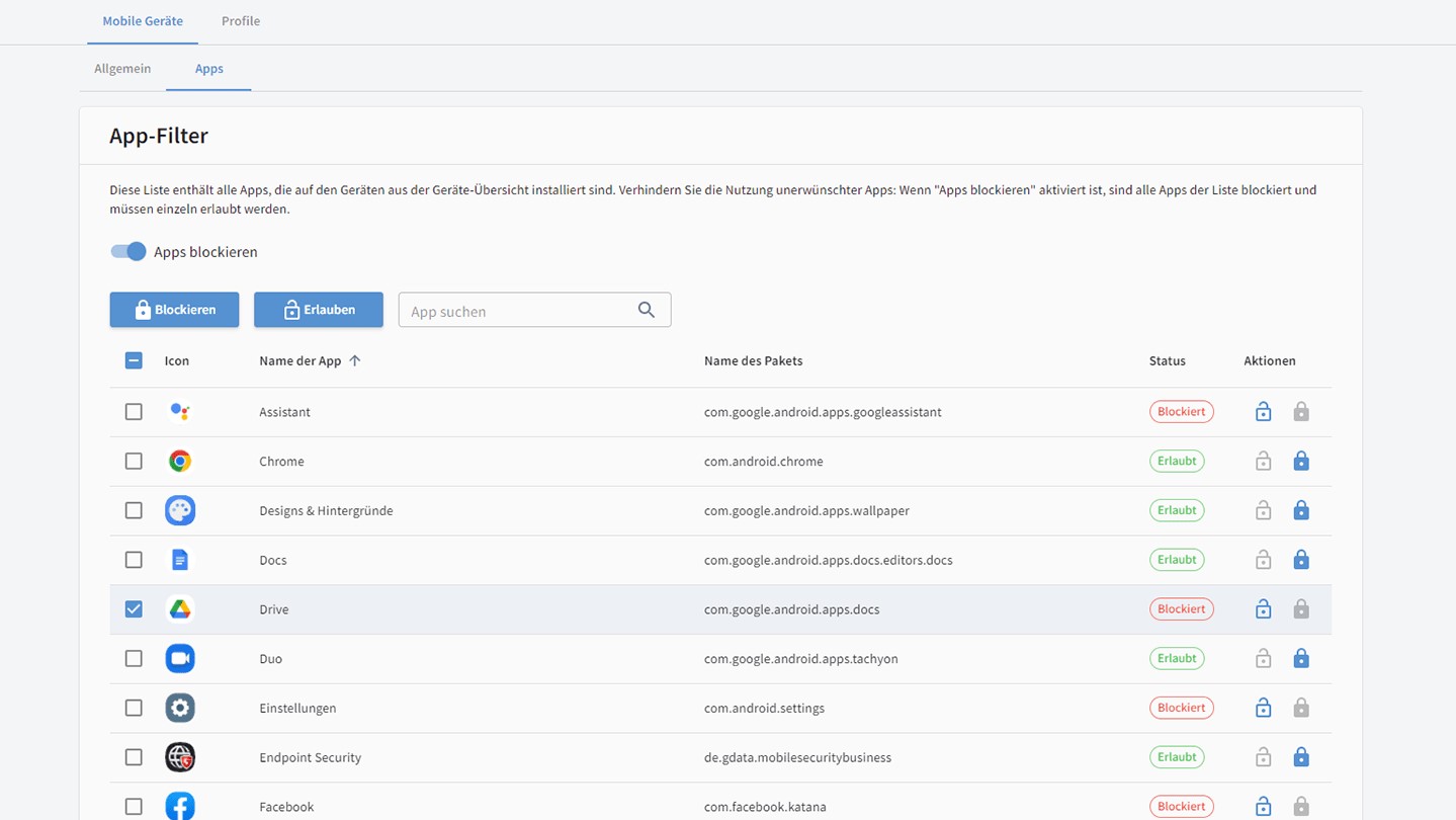 Verhindern Sie durch Black- und Whitelisting die Nutzung unerwünschter Apps.
