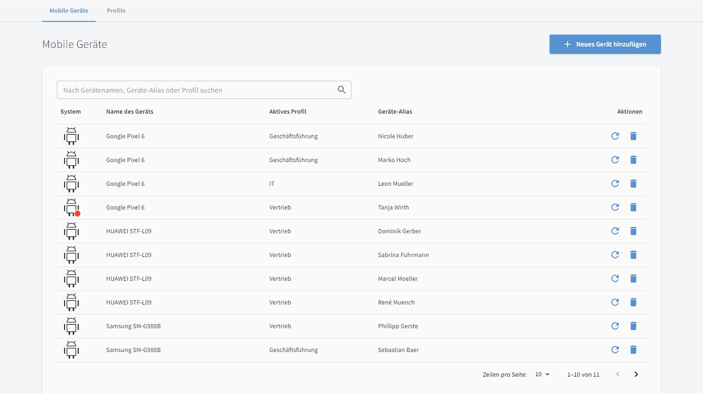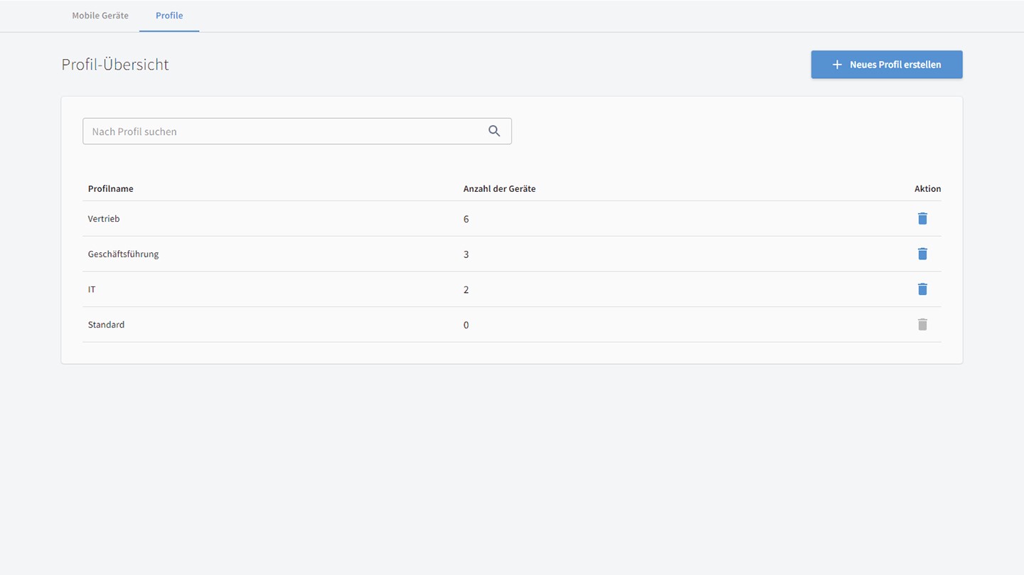 Ordnen Sie Mobilgeräte von Abteilungen oder Standorten individuellen Profilen zu, je nach Sicherheitsstufe.