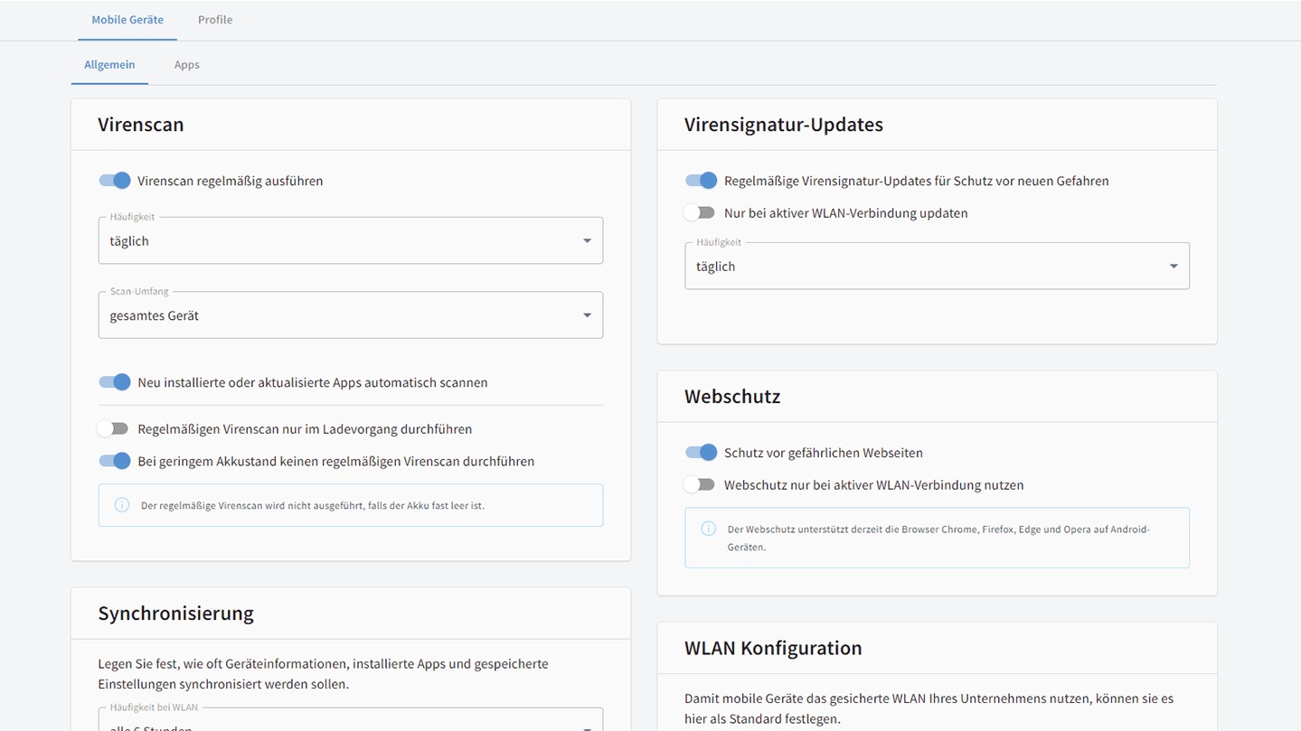 Rollen Sie neue Sicherheitseinstellungen und Richtlinien einfach zentral an alle Geräte aus.