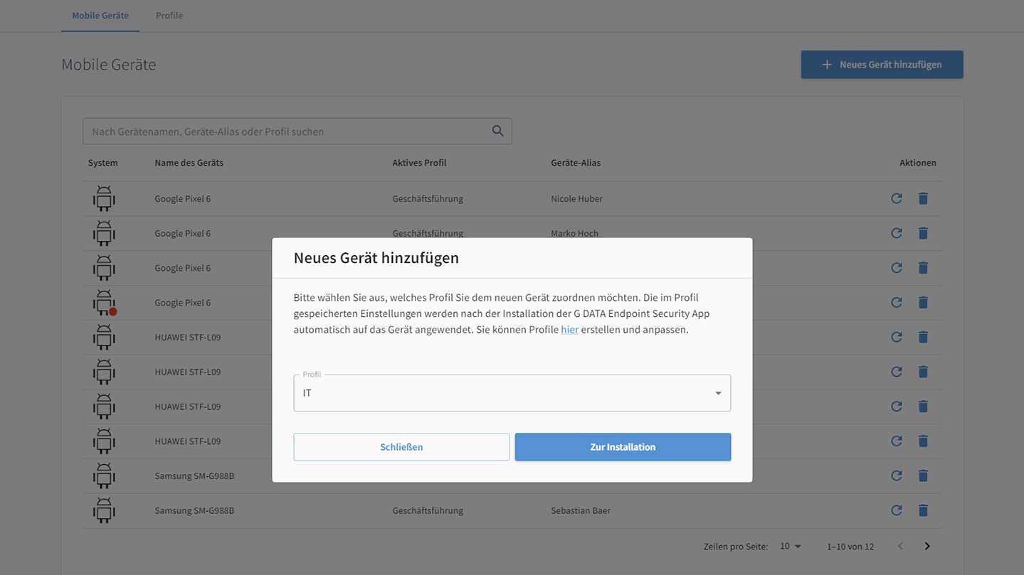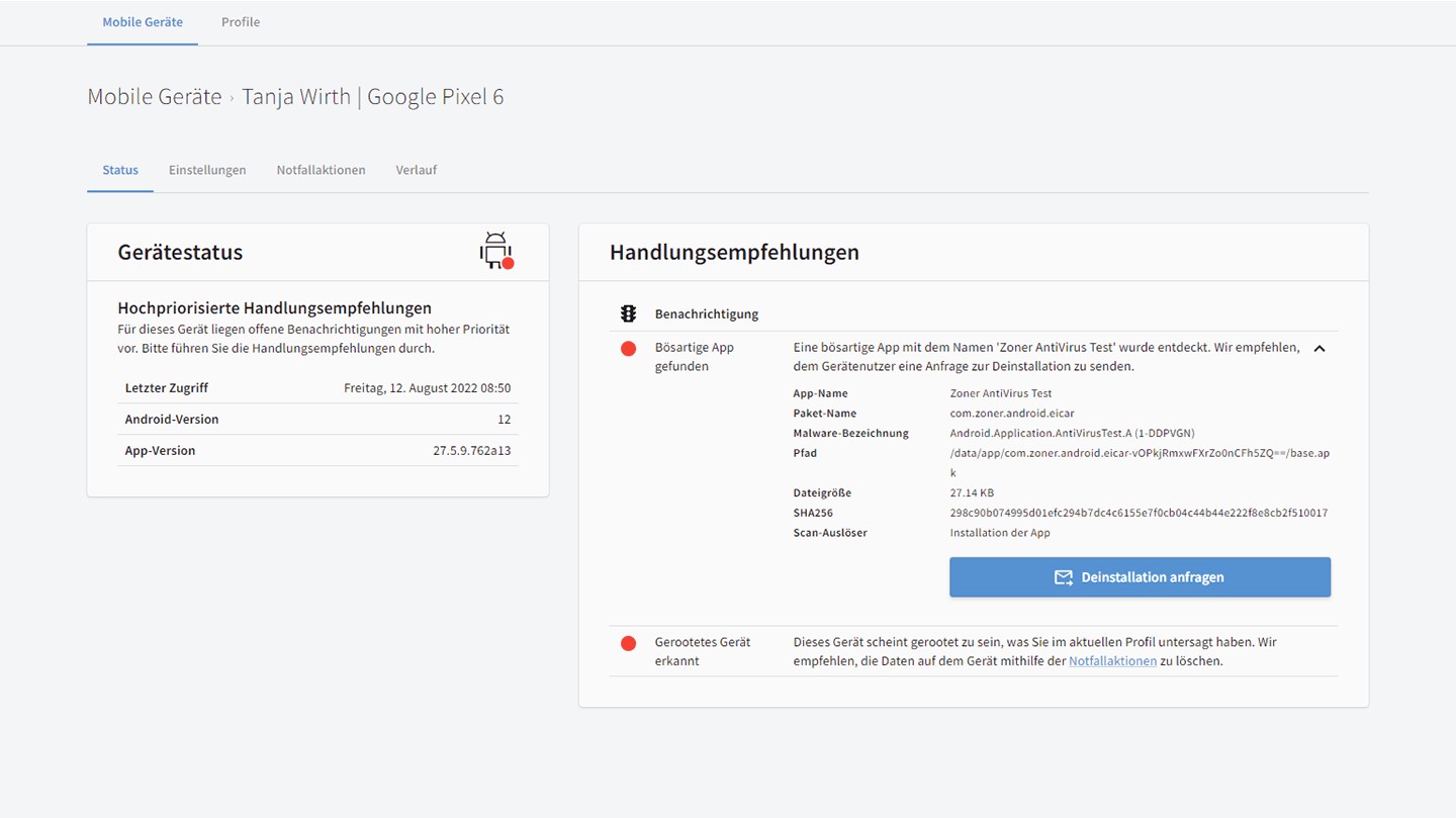 Im zentralen Dashboard behalten Sie die Sicherheit Ihrer mobilen Geräte im Blick.