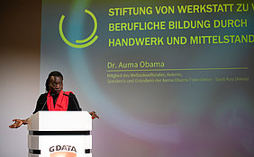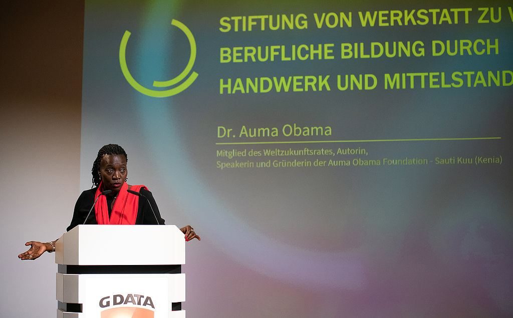 Die Lösung liege weder in Philanthropie noch in humanitärer Hilfe „Wenn wir die Wirtschaft nicht einbeziehen, werden wir immer scheitern.“ Deutsche Unternehmen müssten allerdings nicht nur den eigenen Profit, sondern eine Kooperation auf Augenhöhe mit afrikanischen Partnern anstreben, damit sich kleine Firmen im Land weiterentwickeln können. Ein anderes Problem: In ihrer Heimat Kenia seien Handwerker zu wenig angesehen. Das führe dazu, so die 59-Jährige, dass Kleinstunternehmer am Straßenrand alles Mögliche mit ihren Händen arbeiten, sie aber meist ungelernt sind.