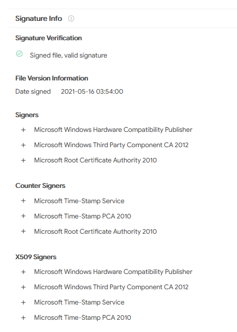 Ursprünglich ging das Analyse-Team von G DATA CyberDefense von einer Falscherkennung aus. Eine genaue Untersuchung ergab jedoch, dass die Erkennung für diese Datei tatsächlich korrekt ist. Microsoft signiert Treiber grundsätzlich nur dann, wenn diese frei von Schadcode sind.